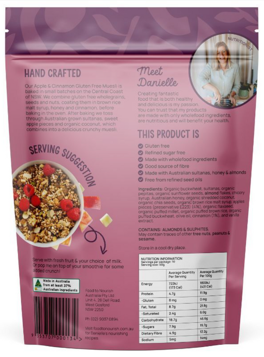 Food To Nourish Gluten Free Muesli Apple & Cinnamon 400g - Gluten Free
